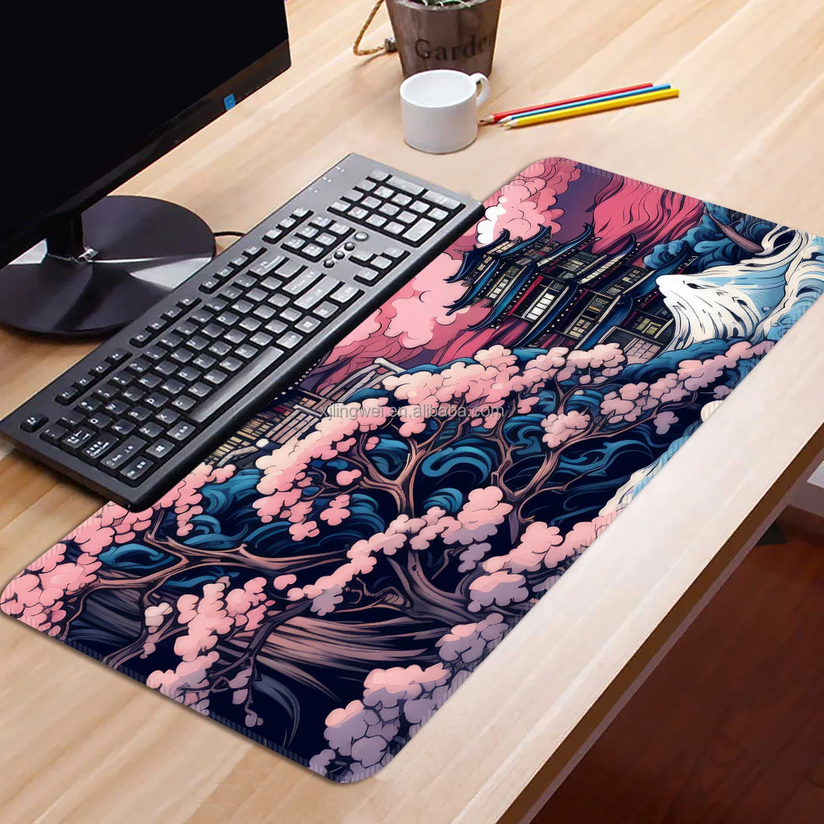 XXL Custom Branded High Quality Gaming Mouse Pad Durable Rubber Desk Pad with Stitched Sublimation Logo